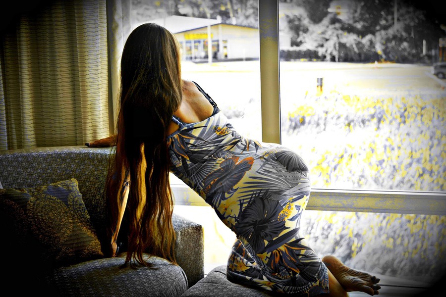 I stand 5′ 3″ tall and weigh 110 lbs. I have beautiful brown eyes that will mesmerize you and long luxurious satin-soft brown hair down past my butt. My warm smile is infectious and my sensuous touch addictive.
