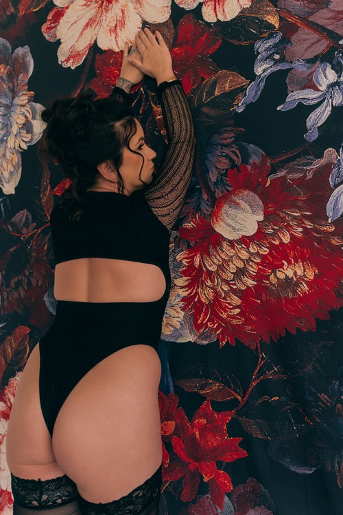 My friends and colleagues would describe me as sweet, but there’s a side of me they never see. In private, my inhibitions go out the window and my sensual side is out to play. If you ever saw me out, I’d likely be in business casual as I am a career woman by day. When I’m running around town, you’ll catch me in my skin tight fitness-wear. A hot night on the town… a tiny black Gucci dress. You won’t see any of my tattoos in photos but a beautiful collection of body art flows with the natural curves of my body.