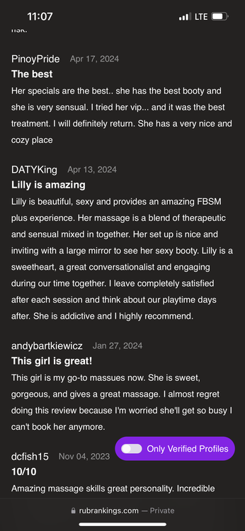 Hi. I’m Lilly, with the most sensual touch. I am skilled, playful and compassionate. My passion lies in the art of touch, where every stroke is designed to awaken your deepest desires. Let me melt away your tensions as my body becomes your fantasy… My center of attention is connection-based, my promise to you is full gratification. I create an intimate escape tailored to your needs… let me take you on a journey where pleasure meets tranquility.